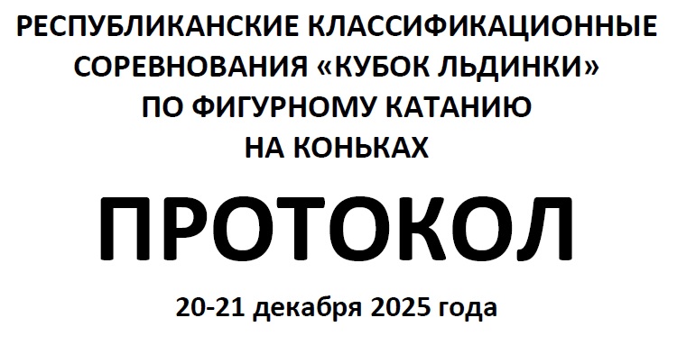 Опубликованы Протоколы соревнований «Кубок Льдинки». Соревнования прошли с 19 по 21 декабря 2025 года в г.Зеленодольск.