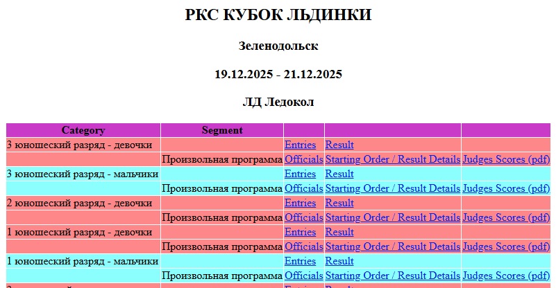 Опубликованы Протоколы соревнований «Кубок Льдинки». Соревнования прошли с 19 по 21 декабря 2025 года в г.Зеленодольск.