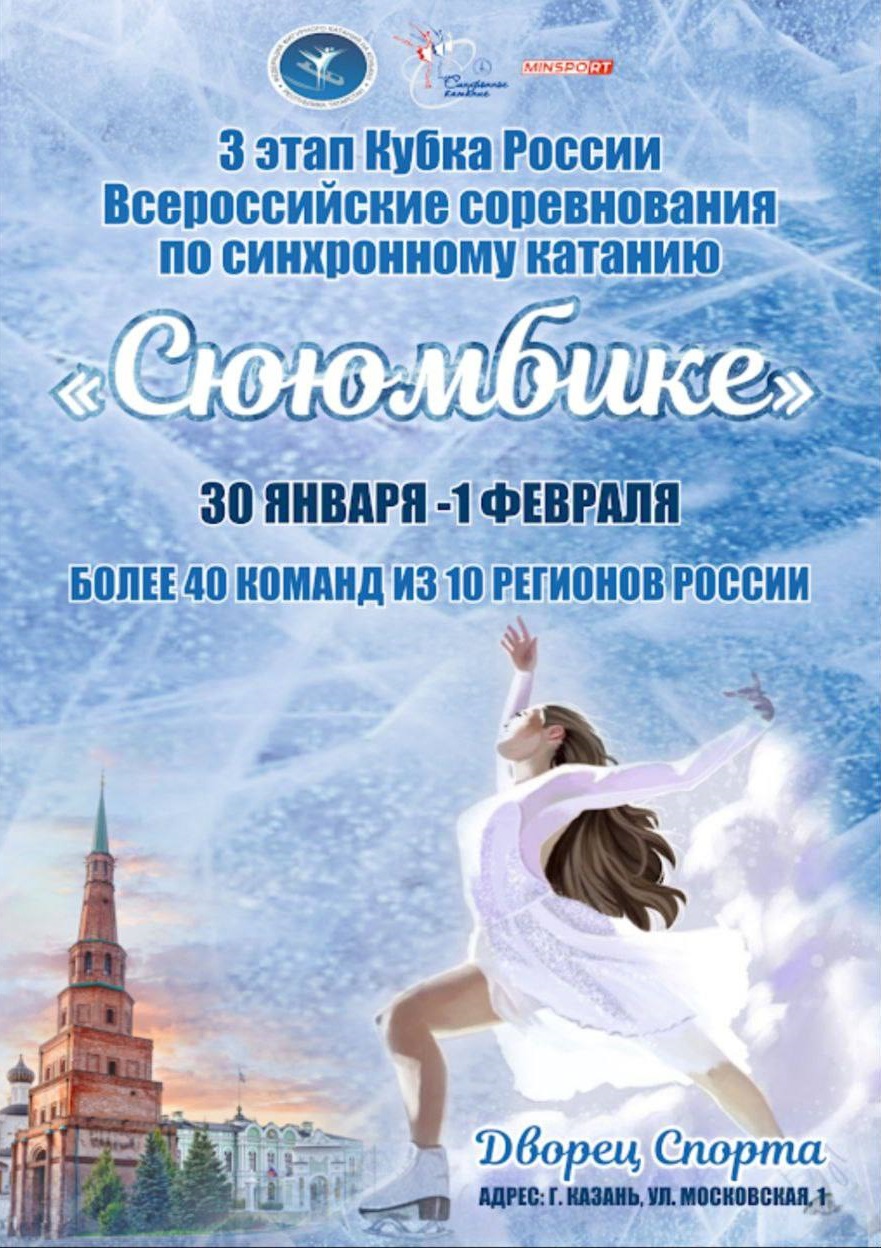 Совсем скоро в Казани состоятся 3 этап Кубка России и Всероссийские соревнования «Сююмбике» по синхронному катанию. Приходите поддержать команды и насладиться праздничной атмосферой соревнований.