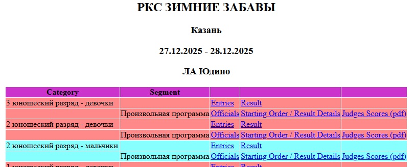 РКС «Зимние Забавы». Онлайн-табло Дата : 30.12.2025 Дата проведения: 27-28 декабря 2025 г. Место проведения: Казань, ЛА «Юдино»