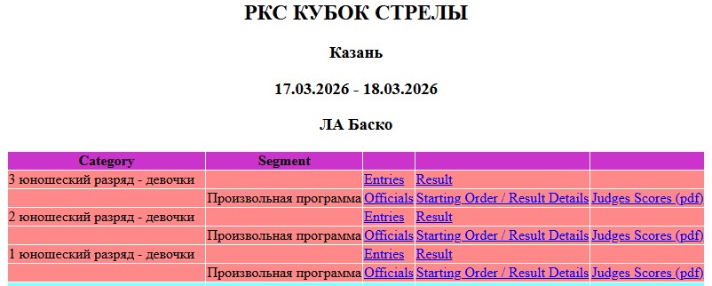 РКС «Кубок Стрелы». Онлайн-табло Дата : 22.03.2026 Дата проведения: 17-18марта 2026 г. Место проведения: г.Кзань, ЛА «Баско»