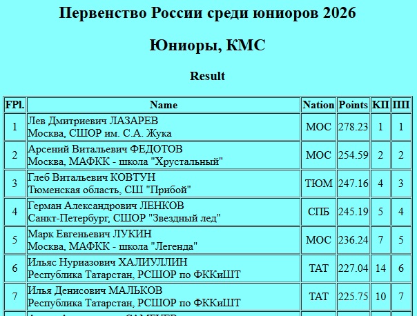 По итогам короткой и произвольной программы наши спортсмены Ильяс Халиуллин и Илья Мальков, заняли 6 и 7 место соответственно.